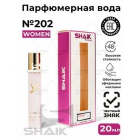 SHAIK - сертифицированная номерная парфюмерия. Ароматы SHAIK относятся к духам и обогащены эфирными маслами, благодаря чему имеют стойкость до 48 часов. SHAIK 202 - соблазнительный, сводящий с ума аромат, созданный для девушки, которая умеет привлечь к себе повышенное внимание. Верхние ноты композиции раскрываются экзотическими нотами маракуйи, сочным ананасом, лакомой клубники, терпкостью грейпфрута и танжерина. В сердце аромата играют звуки мягкого пиона, дикой орхидеи, пылкого жасмина, ласкового ландыша в сочетании с интенсивностью красных ягод. Древесный шлейф развевается нежностью мускуса и терпкостью дубового мха.
