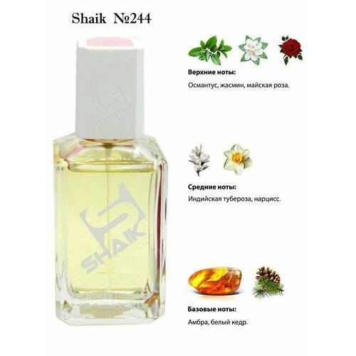 Парфюмерия Shaik обогащена эфирными маслами, благодаря чему имеют стойкость аромата до 48 часов. Верхние ноты: жасмин, османтус, роза. Ноты сердца: тубероза, нарцисс. Базовые ноты: амбра, белый кедр. Раскрывается композиция нежными цветочными нотами розы, жасмина и османтуса, которые сливаются в единое целое с туберозой и нарциссом в сердце букета. В базе аромат наполнен оттенками амбры и белого кедра, благодаря которым парфюм радует своей многочасовой стойкостью. Это идеальный вариант для весенне-летних теплых дней. Аромат не душит, не забивает собой все другие ароматы в радиусе нескольких метров, не притягивает к себе излишнего внимания - он просто красиво развивается на ветру тонким, полупрозрачным шлейфом. Идеальный выбор для молодой кокетки, которая обожает флирт и новые интересные знакомства. Ароматы относятся к духам и обогащены эфирными маслами.