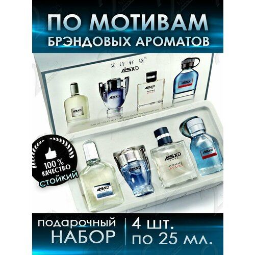 Представляем вам четыре популярных мужских аромата по мотивам известных брендов в красивой подарочной коробке на бархатной подложке. Брутальные сложные восхитетиельные ароматы с длинным шлейфом погрузят Вас в мир приятных воспоминаний. Свежий, таинственный или с пряный с цветочными нотками - выбирите Ваше настроение на сегодняшний день.