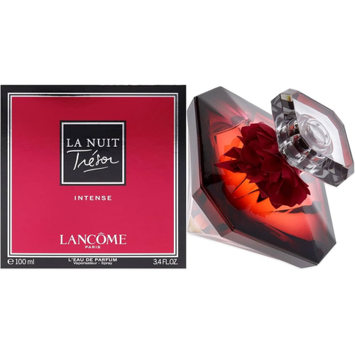 Lancome La Nuit Tresor Intense - новинка в линейке ароматов La Nuit Tresor, презентован широкой публике в начале 2022 года. Как и его собратья, имеет страстный и соблазнительный характер. Относится к цветочно-фруктовому типу парфюмов, с гурманскими нотами вишни и томной вуалью дамасской розы. Обволакивающая волна аромата, слегка терпкая, с утонченными нюансами сладости, дарит отличное летнее настроение и вдохновение. Парфюм мгновенно влюбляет в себя предвкушением новых историй и увлечений, вдохновляет и придает легкость мыслям и чувствам. Начальные ноты дамасской розы, которая собирается вручную на рассвете, пока роса еще лежит на нежных лепестках, раскрываются на коже нежной изысканностью, напоминая струящуюся шелковую вуаль. Темная, спелая летняя вишня очаровывает своим кисловато-сладким, слегка пряным вкусом в сердце композиции и переплетается с базовой мадагаскарской ванилью и миндальным молочком. Древесные свежие ноты уравновешивают фруктово-ванильное торжество, придают аромату завершенность. Чувственный и мягкий, он имеет выраженный шлейф. Флакон Lancome La Nuit Tresor Intense - настоящая драгоценность, кристалл с бриллиантовой огранкой в насыщенных вишневых тонах. Украшен изящным декоративным цветком, он повторяет общий дизайн линейки La Nuit Tresor и станет одним из ваших сокровищ.