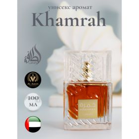 Lattafa Khamrah — роскошный восточно-пряный унисекс парфюм, сочетающий в себе драгоценные пряности, теплоту древесных нот и мягкость ванили. Аромат выпущен арабским брендом люксовой парфюмерии Lattafa Perfumes и одет в роскошный хрустальный флакон.