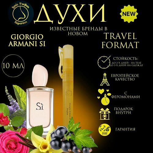 Женские духи по мотивам Giorgio Armani Si - парфюм для роскошных и уверенных в себе женщин. Если Вы любите получать комплименты и быть в центре внимания, то духи Si - Ваш выбор. Объем 10 мл, форма выпуска: в ручке спрей.