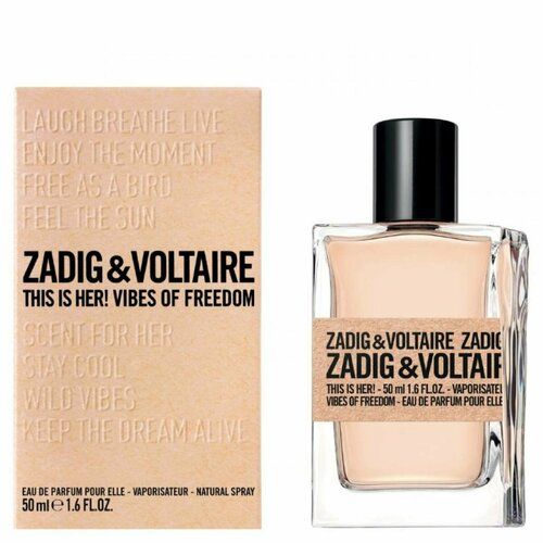Модный бренд из Франции Zadig & Voltaire в 2022 году представил новый аромат для женщин This Is Her Vibes Of Freedom из выразительных цветочных нот с древесной подложкой. Классический стеклянный флакон без излишеств, с черным простым колпачком, украшен крафтовой этикеткой с выразительными черными надписями. Он транслирует философию бренда - минимализм, свободу самовыражения, внутреннюю силу. Оригинальный парфюм ориентирован на молодежную аудиторию, но понравится женщинам любого возраста, которые наполнены внутренней свободой, живут легко, ценят гармонию в себе и окружающих, а вдохновение ищут в красоте мира.