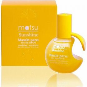 Парфюмерная вода Masaki Matsushima Matsu Sunshine предназначена для представительниц женского пола. Разрабатывая новую коллекцию Sunshine, дизайнер Масаки Мацушима хотел сотворить солнечное настроение и положительный настрой: наименование Sunshine и броский окрас флакончика планировались как направления оптимизма и радости. В качестве источника вдохновения благоухания выступает солнце и особенное положение, занимаемое им в культуре Японии – Стране восходящего солнца. Еще небесное светило – это символ на государственном флаге державы. Аромат разработан в тандеме с парфюмером Жеромом ди Марино. Как небольшое солнышко, круглый желтый флакончик пестрит цветочно-фруктовыми аккордами. Если любите лето – значит это оптимальный парфюм для ношения в продолжение целого года, для ощущения его энергичного тепла даже в пасмурные дни. Минималистичное оформление линии Matsu выбрано с целью выделения ярко-желтого окраса и белого текста на флаконе. Округленные светящиеся изгибы данного гладкого стеклянного флакончика знаменуют Солнце. Градиент желтого оттенка, который покрывает бутылочку, является символом рассвета и заката солнца, кладезя жизни. Более броский желтый колпачок знаменует непрерывный свет небесного светила и усиливает ощущение благополучия. Лимон, давана и благоухающий инжир оттеняют теплоту иланг-иланга, а нежнейшая фрезия привносит свежесть. Запах остается на кожном покрове чувственными аккордами мускуса, сандала и амброксана.