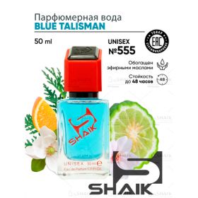 SHAIK - сертифицированная номерная парфюмерия. Духи обогащены эфирными маслами, благодаря чему имеют высокую стойкость. Верхние ноты: Груша, Бергамот, Мандарин и Имбирь; средние ноты: Цветок апельсина и Georgywood; базовые ноты: Ambrofix, Мускус, Akigalawood и Кедр. SHAIK № 555 - современный аромат для мужчин и женщин, принадлежит к группе фруктовые цитрусовые. Духи талисман - символ бесконечной духовной энергии, выраженный тонкой свежестью имбиря, смягченной абстрактными нотами мускуса и амбры. В композиции Blue Talisman встречаются освежающий бергамот, сладкий мандарин, сочная груша и пряно-перечный имбирь. Сердце парфюма дарит теплые древесные ноты с нежной грацией флердоранжа. Завершает композицию нота чувственногоAkigalawood, окутанная амброфиксом и мягким мускусом.