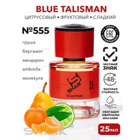 SHAIK - сертифицированная номерная парфюмерия. Духи обогащены эфирными маслами, благодаря чему имеют высокую стойкость. Верхние ноты: Груша, Бергамот, Мандарин и Имбирь; средние ноты: Цветок апельсина и Georgywood; базовые ноты: Ambrofix, Мускус, Akigalawood и Кедр. SHAIK № 555 - современный аромат для мужчин и женщин, принадлежит к группе фруктовые цитрусовые. Духи талисман - символ бесконечной духовной энергии, выраженный тонкой свежестью имбиря, смягченной абстрактными нотами мускуса и амбры. В композиции Blue Talisman встречаются освежающий бергамот, сладкий мандарин, сочная груша и пряно-перечный имбирь. Сердце парфюма дарит теплые древесные ноты с нежной грацией флердоранжа. Завершает композицию нота чувственногоAkigalawood, окутанная амброфиксом и мягким мускусом.