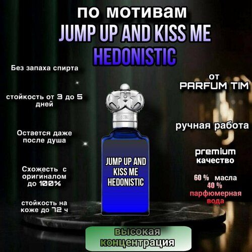 Аромат Jump Up And Kiss Me Hedonistic , выпущенный в 2021 году, действительно представляет собой уникальную парфюмерную композицию, которая обращается как к мужчинам, так и к женщинам, чтобы создать универсальное ощущение восточной древесной экзотики. Этот аромат не только заполняет пространство вокруг своего носителя, но и окутывает его аурой загадочности и притяжения, пробуждая чувственность и желание.