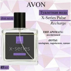 Recharge, surf, rush, force, level. Эйвон Интригующий приятный аромат сочетает в себе мандариновую экспрессию, кардамоновое благородство и пленительное какао с тонкими восточными оттенками. В нем есть все: сладость, терпкость, свежесть и все в меру, ни больше ни меньше - ровно столько, сколько нужно. туалетная вода ТИП аромата: восточный с нотой "гурме"ноты: мандарин, кардамон, страна производства: Россия/Польша. Туалетная вода для мужчин Avon X-series(Эйвон икс сириес)50мл, Шампунь-гель Avon X-series Recharge 250мл, Набор туалетная вода+шампунь-гель Avon X-seriesТуалетная вода X-Series Pulse Level для него, 50 мл Переходи на новый уровень экстрима. Попробуй новые ощущения. Новый аромат с сладковато-пряными нотами ягод можжевельника, темного шоколада и янтаря вдохновит тебя на самые яркие приключения. Туалетная вода Surf для него, 50 мл Яркий, дерзкий, наполняющий энергией, вдохновляющий. Новый аромат с нотами освежающего лимона, африканского перца и сандалового дерева вдохновит тебя на самые яркие приключенияТуалетная вода Rush для него, 50 мл Рискуй и достигай Попробуй яркий и неповторимый сладко-пряный аромат, в котором пикантность специй и бархат древесных нот сочетаются с кисловатыми нюансами зеленого яблокатуалетная вода X SERIES RECHARGE Эйвон для него , это мужской аромат, который порадует вас стойким вкусным восточным запахом со вкусом гурме. В начале пряной и цитрусовой композиции парфюма звучат нотки базилика, мандарина и инжира, раскрываясь в сердце аромата вкусом кардамона, герани и шалфея, и оставляя в конце на коже послевкусие с шоколадными нотами какао, сандала и мускусаТуалетная вода Force для него, 50 мл На пике экстрима Выйти из зоны комфорта, попробовать что-то новое, испытать экстремальные ощущения - вот, что тебе нужно, чтобы чувствовать себя живым. Смелое сочетание нот бергамота, амбры и кедра дарит это ощущение каждую минуту.