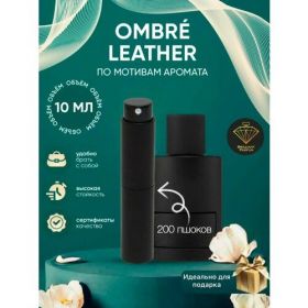 Tom Ford Ombre Leather – аромат бренда Tom Ford, выпущенный в 2018 году в США. Парфюм относится к семейству кожаных, унисекс. В этом аромате есть сочетание нот для мужчин и для женщин. Мелодия этого парфюма не похожа на другие и имеет изысканное и роскошное звучание. Начинает звучание свежими нотами кардамона, которые сменяются звучанием нежнейшего жасмина. В самом сердце начинается яркое звучание аккордов черной кожи. Настолько пленительный аромат в середине этой восхитительной мелодии влюбит вас в себя с первого взгляда и навсегда. Завершается аромат звучанием приторного белого мха, пленительными аккордами масла пачули, которые переплетаются плавно с нотой амбры. Tom Ford Ombre Leather обворожит звучанием своей мелодии и надолго останется любимчиком. Верхние ноты Кожа, Кардамон Ноты сердца Кожа, Цветочные ноты, Жасмин Самбак Базовые ноты Пачули, Амбра, Специи, Мох Время года Осень, Зима