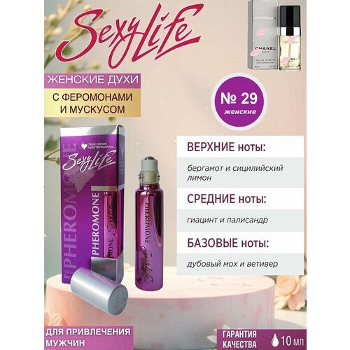 Духи женские С феромонами «SEXY LIFE» № 29 — имеет ненавязчивый характер, что позволяет использовать его для деловых встреч, романтического свидания или простой прогулки по парку. Аромат с легким и приятным шлейфом.