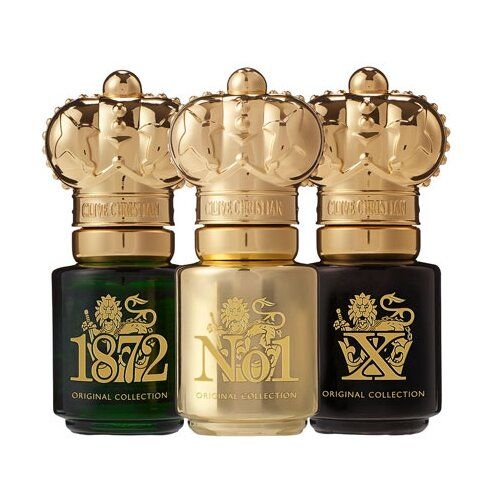 Товар Clive Christian - парфюмерный набор для мужчин, который включает в себя три миниатюрных флакона духов, каждый объемом по 10 миллилитров. Каждый флакон увенчан короной Британской Империи, что подчеркивает высокое качество и престижность продукта. Набор упакован в красивую черную атласную коробку, которая делает его идеальным подарком для мужчин.