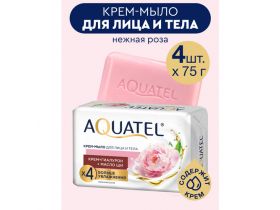 Крем-мыло туалетное твердое Aquatel для лица и тела нежная роза 4х75г 103814064859