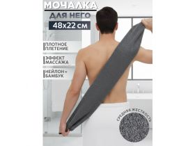 Мочалка японская мужская CityUP, с ручками, нейлон и бамбук, средняя жёсткость, 48×22 см, чёрно-серая 103168155434