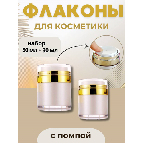 НАЙТИ ВЫГОДНЕЕ - Набор из 2 баночек вакуумных с помпой 30 мл и 50 мл в золоте, Баночка для крема, Флакон с помпой, Флакон для крема пустой.