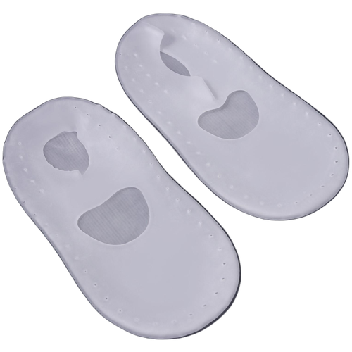 Артикул: 1735-945. Размеры: 1.8 x 9 x 18 см, Материал: Силикон, Вес: 125 гр, Вид: SPA-носки, Назначение: Питание и восстановление, Размер упаковки: 14 x 1 x 24.5 см, Цвет: Белый, Вид расходных материалов: Носочки для педикюра, Детские: Нет, Температурное ограничение: Нет, Вид упаковки: Пакет, Набор: Нет, Вид стелек: Вкладыши для стопы, Особенности: С перфорацией. Погрузитесь в мир заботы о своих ногах с инновационными силиконовыми носочками для педикюра носочки насыщают кожу питательными веществами, делая её мягкой и гладкой. Удобство использования: просто наденьте носочки и расслабьтесь, пока они работают на вашу красоту. Перфорация: обеспечивает циркуляцию воздуха, предотвращая избыточное потоотделение и дискомфорт. Компактная упаковка: удобно хранить и брать с собой в поездки, чтобы всегда быть готовыми к уходу за ногами. Идеально для домашнего использования: создайте атмосферу спа прямо у себя дома и побалуйте себя уходом за ногами. Выбор силиконовых носочков для педикюра это шаг к здоровым и ухоженным ногам. Позвольте себе насладиться моментами заботы о себе и ощутите разницу Носочки силиконовые помогают ухаживать за кожей стоп и пяток. Они усиливают действие кремов и масок, не создают затруднений при ходьбе. При регулярном использовании ножки день за днём будут становиться более гладкими и мягкими. ОсобенностиЗащищают от появления трещин. Смягчают сухую и огрубевшую кожу. Защищают от подошвенного фасциита, метатарзалгии и мозолей. Выводят излишнюю влагу через специальные отверстия, благодаря чему нога дышит. Снижают трение между пальцами ног. Одеваются на босую ногу или на носочки. Носочки комфортно фиксируются на ноге. Как использоватьПодержите ноги в горячей воде в течение 30 минут. Нанесите увлажняющий крем. Наденьте силиконовые носочки.