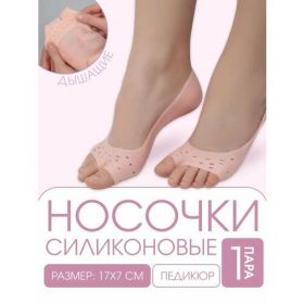 НАЙТИ ВЫГОДНЕЕ - Носочки для педикюра, силиконовые, с перфорацией, с разделителем, 17×7 см, бежевые