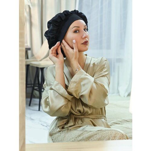 НАЙТИ ВЫГОДНЕЕ - Шапочка для сна WMA STORE, женская, атласная, черная, 50-60 размер