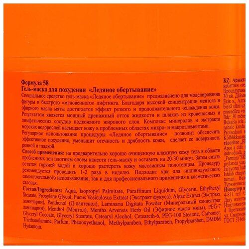 Специальное средство гель-маска «Ледяное обертывание» предназначено для моделирования фигуры и быстрого «мгновенного» лифтинга.