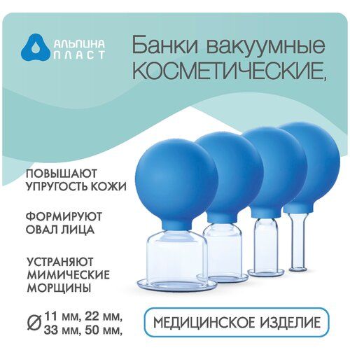 Максимальный лечебный эффект при минимальных болезненных ощущениях Банки медицинские сухие вакуумные полимерно-стеклянные для проведения статической или кинетической вакуум-терапии БВ-01-"АП"-1,2,3,4 (косметический массажный набор).