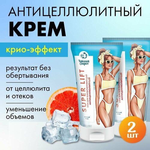 НАЙТИ ВЫГОДНЕЕ - Тайский секрет. Крем для тела антицеллюлитный, от апельсиновой корки, набор 2 штуки по 150 мл. Зеленый кофе / лучикс