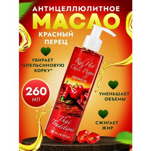 НАЙТИ ВЫГОДНЕЕ - Антицеллюлитное масло для массажа тела массажное разогревающее корректирующее фигуру жиросжигающее профессиональное с красным перцем Thai Traditions Красный Перец, 260 мл.