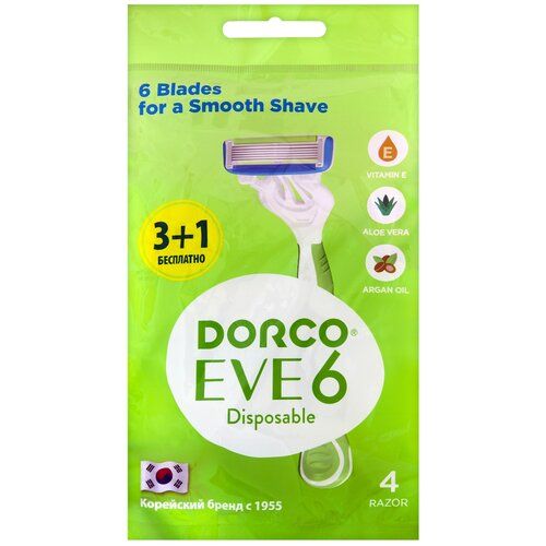 Бритва одноразовая Dorco EVE6 ,6-лез, пл. голов, увл. пол 4шт/уп SXA300-(3+1)P