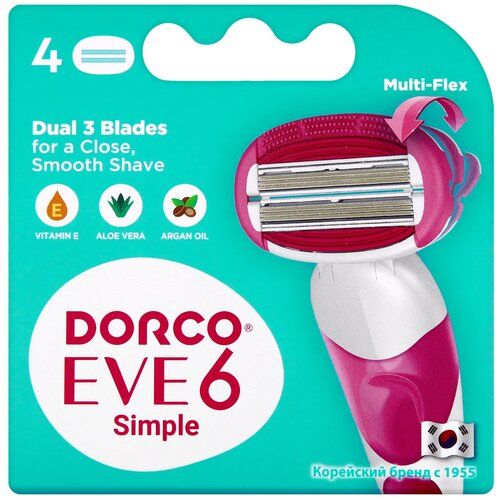 НАЙТИ ВЫГОДНЕЕ - Dorco Eve 6 Simple / Shai Sweetie cменные кассеты, 4 шт., с 4 сменными лезвиями в комплекте