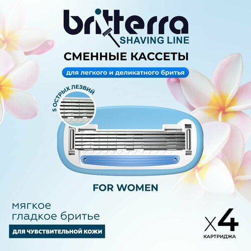 НАЙТИ ВЫГОДНЕЕ - Лезвия для бритвы BRITTERRA for Women, 5 лезвий, голубые, 4шт.