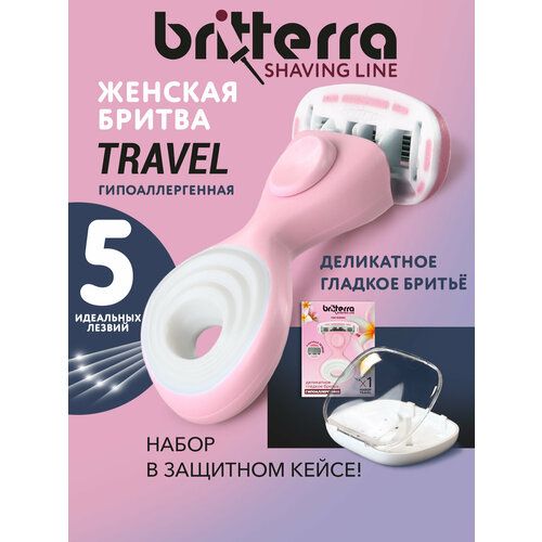 НАЙТИ ВЫГОДНЕЕ - Бритва мини женская BRITTERRA со сменной кассетой 5 лезвий FOR WOMEN PINK TRAVEL, футляр для бритвы, хранения и путешествия