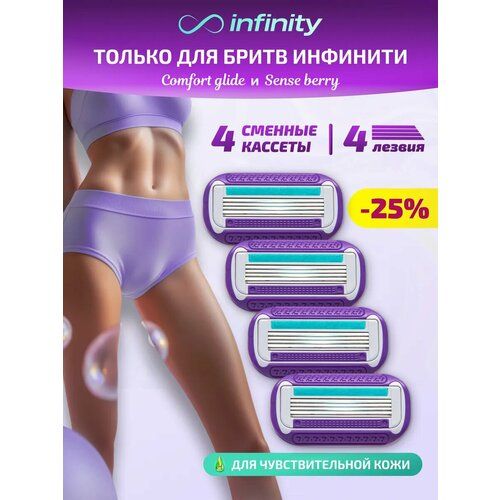 НАЙТИ ВЫГОДНЕЕ - Кассеты для бритья женские сменные INFINITY SenseBerry 4 шт, 4 лезвия