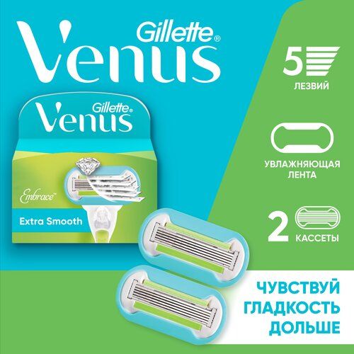 НАЙТИ ВЫГОДНЕЕ - Сменные Кассеты Для Женской Бритвы Venus Extra Smooth, 5 лезвий, 2 шт.