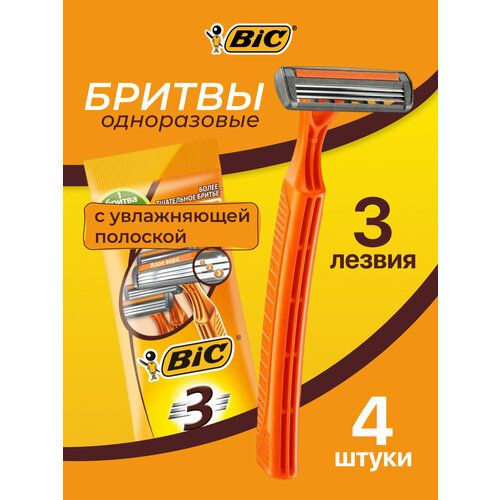 НАЙТИ ВЫГОДНЕЕ - Бритва одноразовая Bic 3 Sensitive, оранжевая, 4 штуки в упаковке