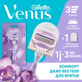 НАЙТИ ВЫГОДНЕЕ - Venus бритвенный станок ComfortGlide с 3 сменными лезвиями + подставка, с 3 сменными лезвиями в комплекте