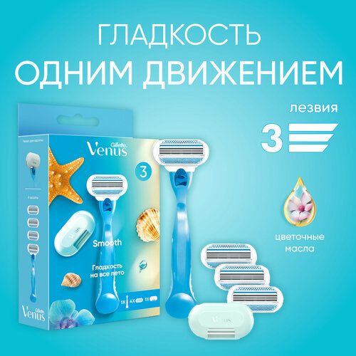 НАЙТИ ВЫГОДНЕЕ - Venus бритвенный станок Smooth с 4 сменными лезвиями + чехол, с 4 сменными лезвиями в комплекте