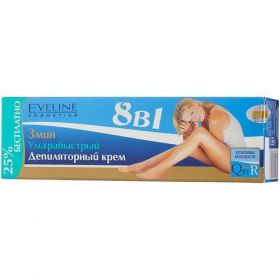 Крем для депиляции Eveline Cosmetics 3мин ультрабыстрый 8в1 поможет быстро, легко и бережно избавиться от нежелательных волосков на теле, при этом без боли, дискомфорта и повреждений. Крем нужно наносить на участки тела, на которых есть нежелательные волоски, и выдержать 3 минуты. Активная формула крема размягчает и растворяет волоски так, что их можно просто удалить шпателем вместе с остатками крема с кожи. Депиляционный крем Eveline Cosmetics 3мин ультрабыстрый 8в1 содержит следующие активные компоненты. Коэнзим молодости Q10 стимулирует функции кожи и защищает ее от агрессивного воздействия внешних факторов. Ускоряет регенерацию, питает и успокаивает раздражения. Витамин Е придает эластичность и возвращает оптимальный уровень увлажнения. Аллантоин успокаивает раздражения, смягчает и разглаживает поверхность кожи. В отличие от бритвы, депиляции воском, сахаром или лазером, средство для удаления волос Eveline Cosmetics 3мин ультрабыстрый 8в1 не повреждает кожу и не доставляет никаких неприятных ощущений, а волоски после него отрастают медленнее и более мягкие и тонкие. Сделайте свой уход за кожей тела более комфортным, эффективным и приятным для себя с кремом для депиляции тела Eveline Cosmetics Aqua (Water), Cetearyl Alcohol, Thioglycolic Acid, Calcium Hudroxide, Potassium Hudroxide, Ceteareth-20, Propylene Glycol, Glyceryl Stearate SE, Parfum (Fragrance), Ethylhexyl Stearate, Paraffinum Liguidum, Cucumis Melo Fruit Extract, Cucumis Sativus Fruit Extract, Butylphenyl Methylpropional, Citronellol, Geraniol, Hydroxycitronellal, Hexyl Cinnamal, Hudroxyisohexyl-3-Cuclohexene Carboxaldehyde.