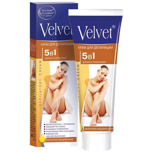 Крем для депиляции Velvet 5 в 1 быстро и эффективно удаляет нежелательные волоски, сохраняя кожу гладкой в течение 2 недель