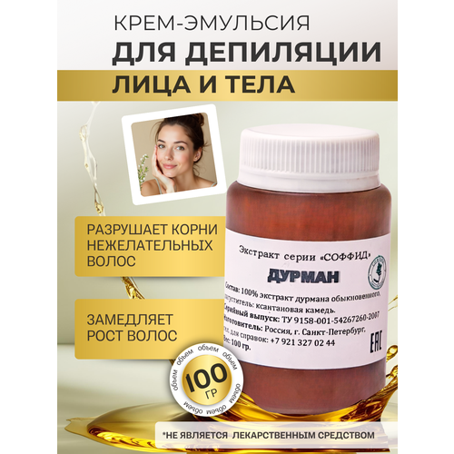 Дурман - натуральный крем депилятор для удаления волос на лице, теле, в зоне бикини. Препарат произведен в России, сочетает достижения современной косметологии, а также народные традиции. В составе продукта органическое масло дурмана.