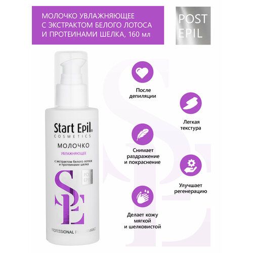 Молочко увлажняющее Start Epil с экстрактом белого лотоса и шёлком предназначено для завершающего ухода за кожей после процедуры депиляции.