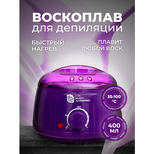 НАЙТИ ВЫГОДНЕЕ - Воскоплав для депиляции баночный с термостатом Pro wax 100 фиолетовый 400мл Lian Beauty Aсcessories