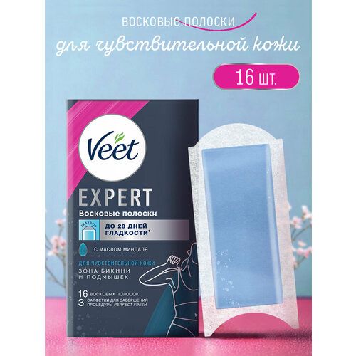 НАЙТИ ВЫГОДНЕЕ - Veet Expert восковые полоски для чувствительной кожи (зона бикини и подмышек), 16шт. полосок для депиляции = 8шт. сдвоенных полосок