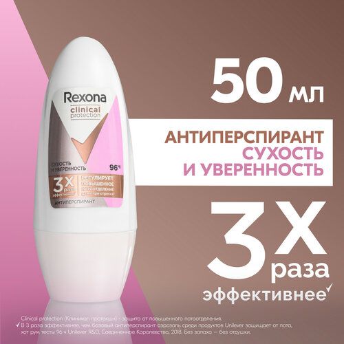 Шариковый антиперспирант женский из нового* поколения средств Рексона Клиникал сохраняет сухость и свежесть кожи подмышек даже при стрессе. Дезодорант от повышенного потоотделения женский разработан на основе микротехнологии совершенной* защиты, которая образует микропленку на поверхности кожи. Дезик женский шариковый обеспечивает 96 часов непрерывной защиты от пота и запаха**. Мы уменьшили и стабилизировали размер частиц активного вещества. Чем меньше частица актива, тем лучше она проникает в пору и надежно удерживает пот внутри. За счет этого Рексона дезодорант женский защищает от пота в 3 раза эффективнее, чем базовый антиперспирант.** Пот внутри - сухость снаружи.