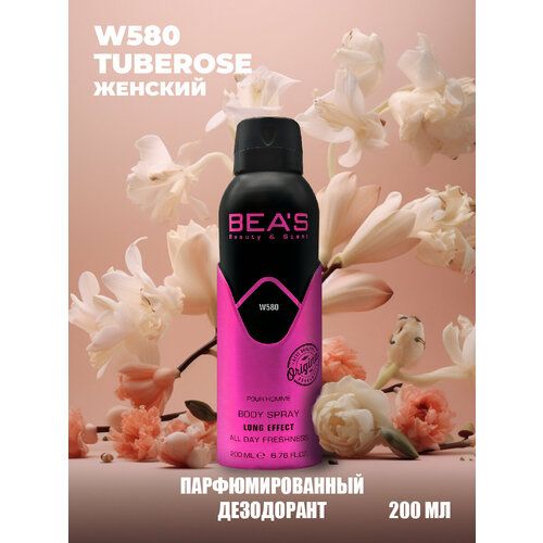 BEAS Парфюмированный дезодорант для тела Tuberose for women W580 Аромат с насыщенным цветочным ароматом принадлежит к цветочно-фруктовой группе. Раскрывается нотами смородины, цитрусов, туберозы, сандала и сладкой ванили. Выпускается в нежно-розовом флаконе.