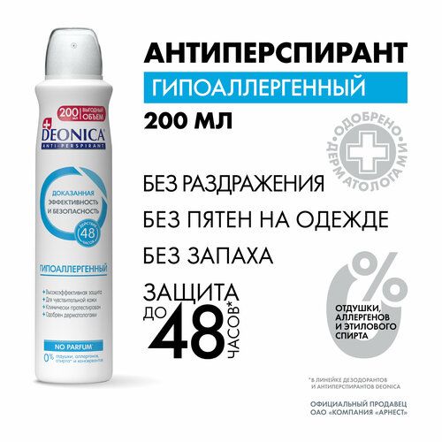 НАЙТИ ВЫГОДНЕЕ - Deonica Антиперспирант Гипоаллергенный, спрей, аэрозоль, 200 мл, 230 г, 1 шт.