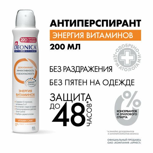 НАЙТИ ВЫГОДНЕЕ - Deonica Антиперспирант Энергия витаминов Vitamin care, спрей, флакон, 200 мл, 200 г, 1 шт.