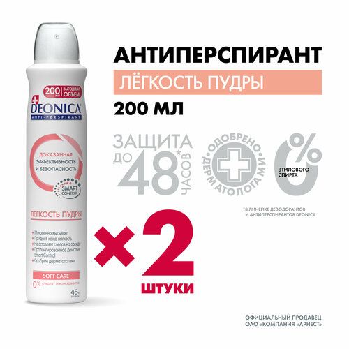 НАЙТИ ВЫГОДНЕЕ - Дезодорант женский (Антиперспирант) Лёгкость пудры Deonica. Спрей, 200 мл, 2 шт