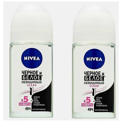 НАЙТИ ВЫГОДНЕЕ - NIVEA Черное и Белое Набор из 2 штук Невидимый Clear Дезодорант-антиперспирант шариковый