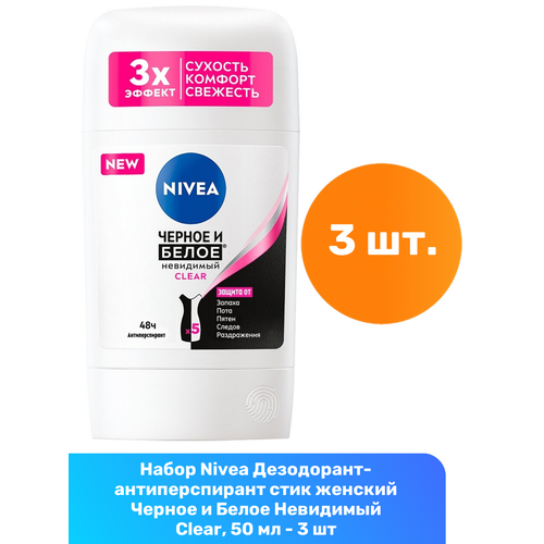 НАЙТИ ВЫГОДНЕЕ - Антиперспирант, Nivea, Clear, черное и белое, невидимый, стик, 50 мл, 3 шт