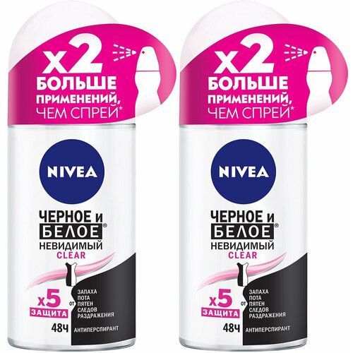 НАЙТИ ВЫГОДНЕЕ - Антиперспирант Nivea, Черное и Белое, Невидимый Clear, ролик, 50 мл, 2 шт.