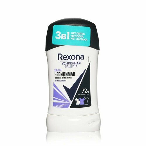 Rexona ультраневидимая антиперспирант-карандаш 72ч уверенности 3в1 нет пятен, пота и запаха 40 млВключите в свой ежедневный ритуал свежести антиперспирант-карандаш Rexona Ультраневидимая. Он создан для качественной защиты от пота и запаха в течение 72 часов. Формула антиперспиранта разработана с использованием инновационной технологии Motionsense, микрокапсулы которой под действием трения непрерывно высвобождают дополнительный аромат.Улучшенная формула Rexona содержит меньше солей алюминия – основной причины белых пятен. Формула продукта бережно сохраняет ткань от белых следов, желтых пятен и выцветания. Живите в своем темпе, выбирайте модные образы и одевайтесь под настроение, защиту от пота и запаха возьмет на себя Rexona.Антиперспирант имеет комплиментарный цветочный аромат с нотками фруктов. Садится близко к коже и не перебивает аромат вашего парфюма. Антиперспирант-карандаш идеален, если вам нужен дезодорант в поездку или в душ после тренировки в зале. Упаковка антиперспиранта выполнена в новом актуальном дизайне, и займет достойное место на вашей полочке.В линейке серии также представлены антиперспирант-аэрозоль и шариковый антиперспирант, чтобы вы могли выбрать идеальный для себя формат.Не содержит этилового спирта. Дерматологически протестирован.