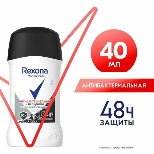 НАЙТИ ВЫГОДНЕЕ - Rexona / Антиперспирант-карандаш Rexona Антибактериальная и невидимая на черной и белой одежде 40мл 2 шт
